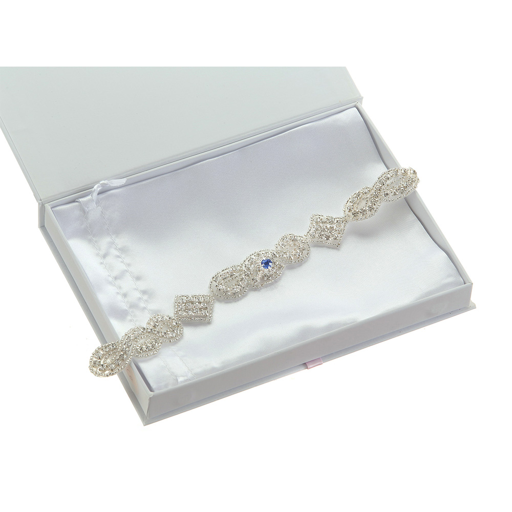 Our Beautiful Bling Rhinestone Keepsake Garters are encrusted with clear, sparkling A1 quality Czech Rhinestones, all set in a unique and gorgeous pattern of rhinestone twists and diamond shapes. Our high quality Rhinestones are accented with tiny hand-stitched silver beads and the sparkling effect is breathtaking, especially when the light hits them.