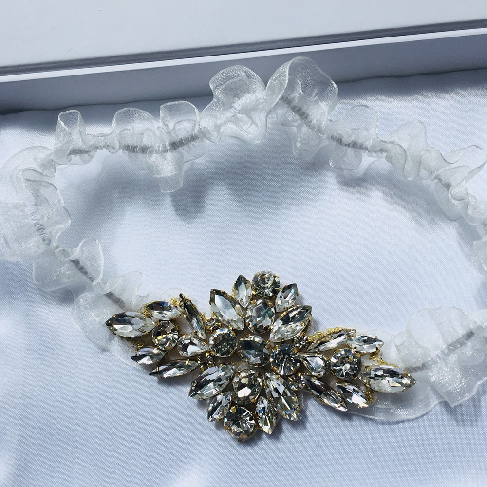 Garters & Co’s Brittany Heirloom Wedding Garter made with sparkling Crystals and a delicate soft off-white organza garter. We handcraft our beautiful Crystals into the most stunning Heirloom Wedding Garter especially for you. The Crystals in our garter will shine as brightly as you do on your Wedding Day.