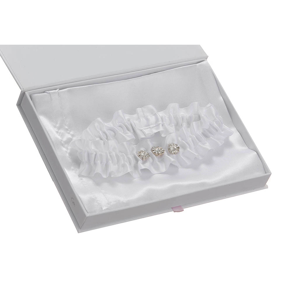 Your Wedding Garter is carefully packaged into our White Luxe Gift Box and tied with a silky Pink Satin Bow. On opening your Gift Box, your Wedding Garter will be sitting inside, nestled onto its own Keepsake White Satin Drawstring Bag. This will keep it safe and sound until your Wedding Day and preserve it for the years ahead.