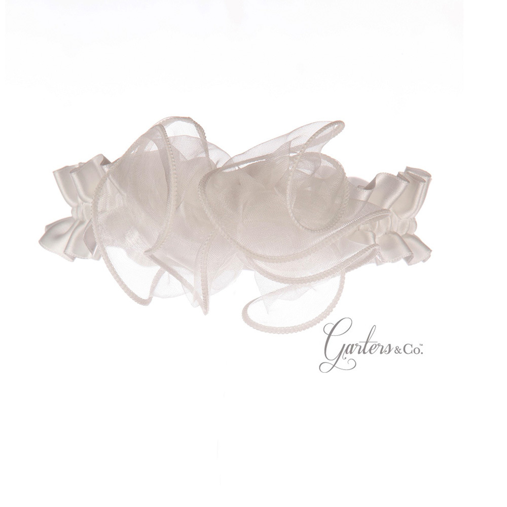 Silky soft luxurious swirls of Organza, twisted into a whimsical, eye-catching and romantic Garter. Off-white organza. Handmade in Melbourne