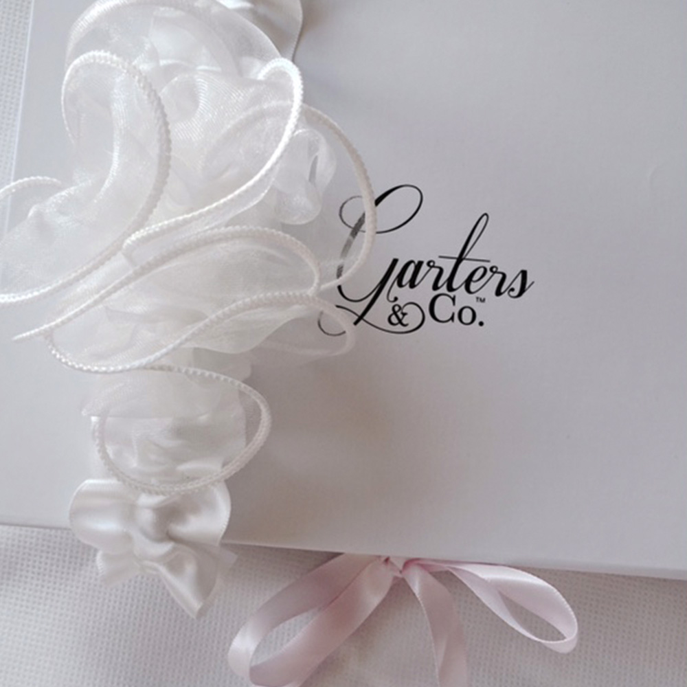 Your Wedding Garter is carefully packaged into our matte white luxe styled box. A magnetic closing lid that is then tied and secured with a silky Satin Pink Bow. You will find your Wedding Garter sitting inside, nestled on top of its own luxurious white satin bag. This will keep it safe and sound until your Wedding Day and for also preserve it for the years ahead.